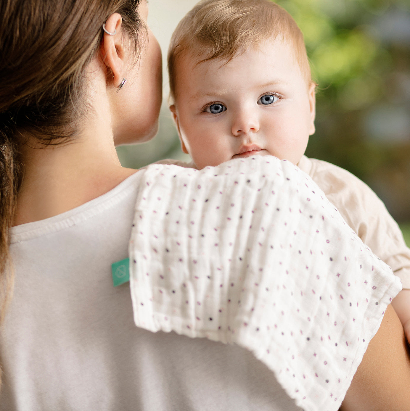 Neugeborenen-Musselins aus Baumwolle, die genau das werden, was Sie brauchen: durch ihre geringe Größe sind sie ideal als Lätzchen, Spucktuch, wiederverwendbares Wickeltuch...