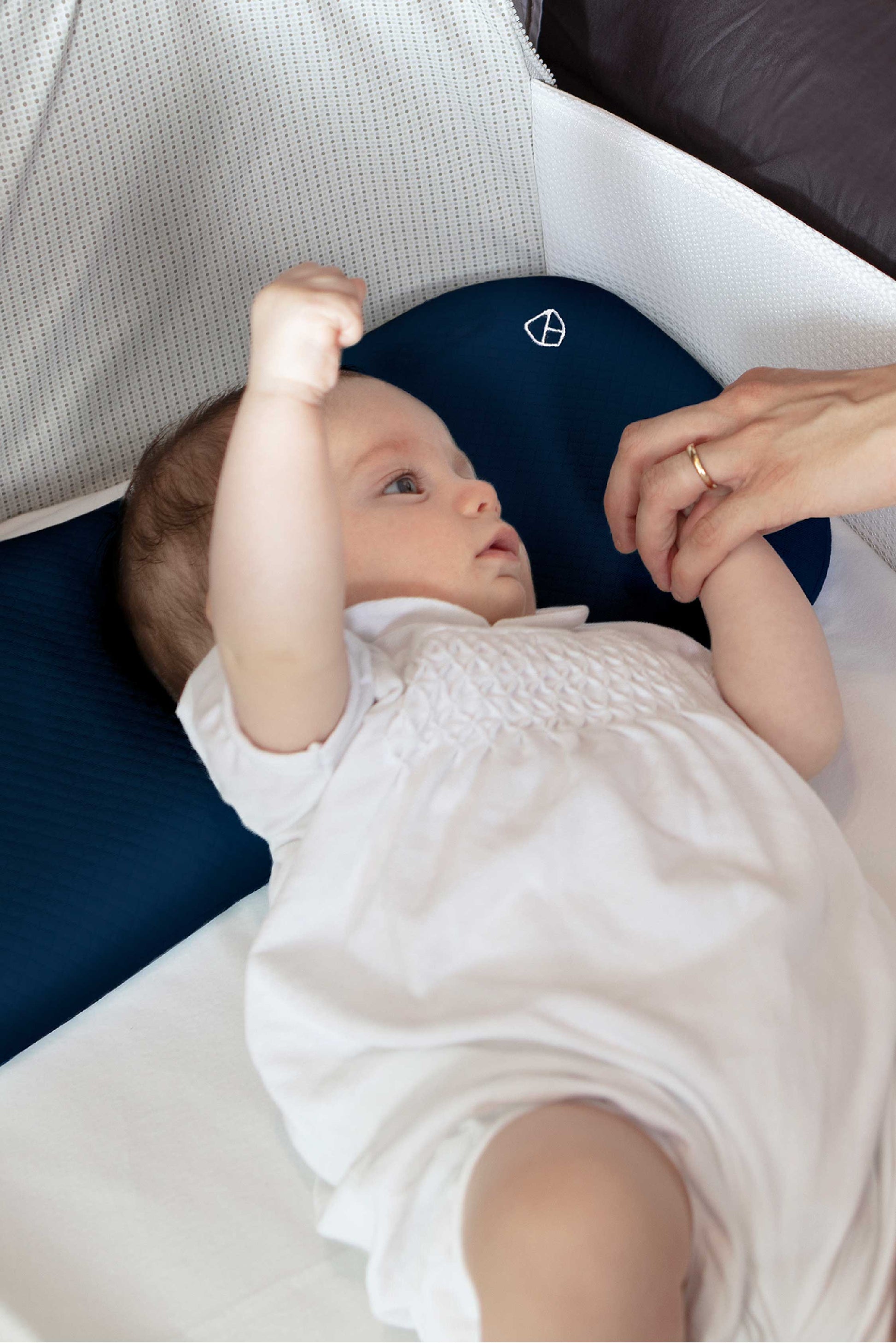 La almohada tiene un diseño deliberadamente más delgado alrededor de la zona del cuello para evitar que la cabeza del bebé se incline hacia delante y bloquee las vías respiratorias.