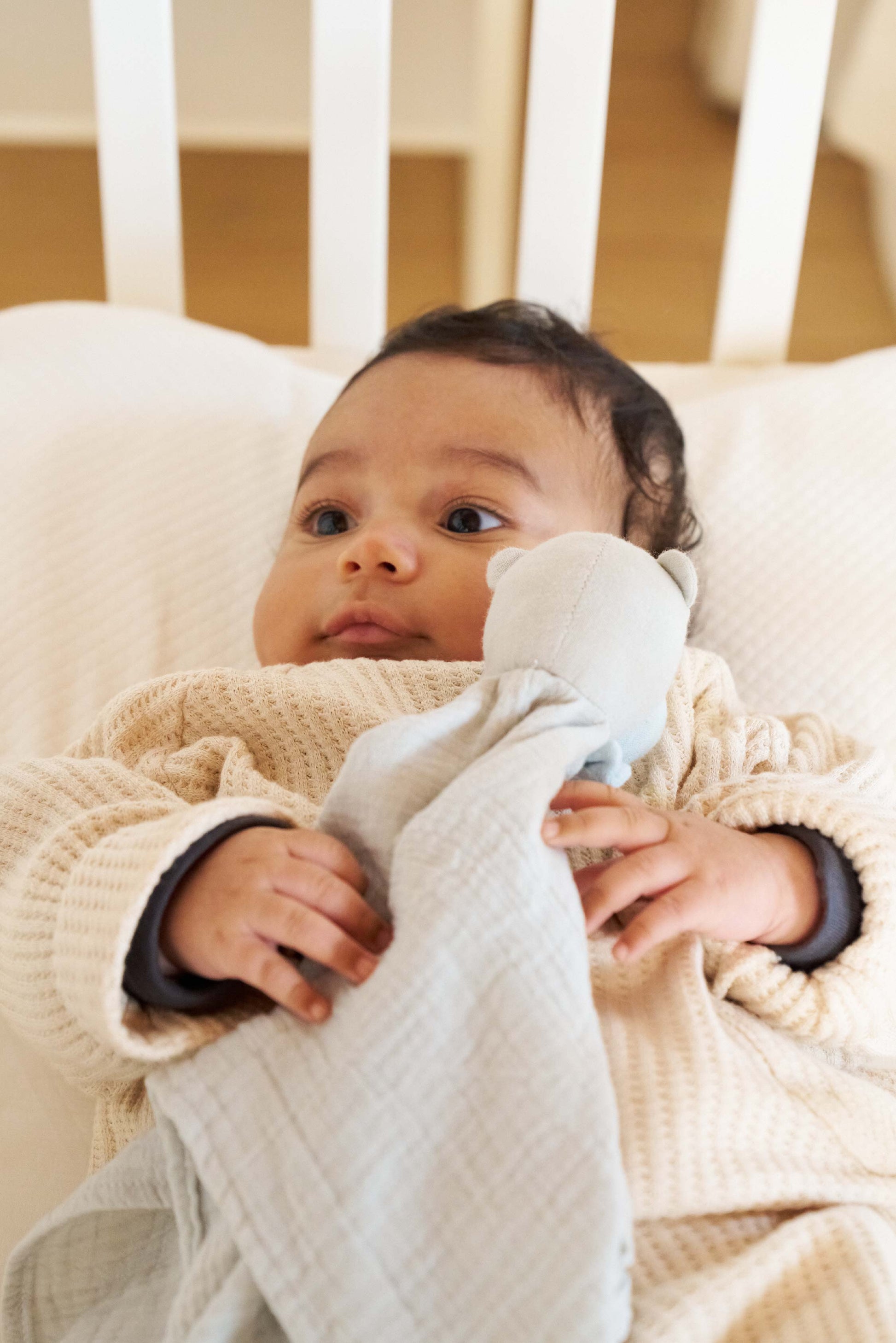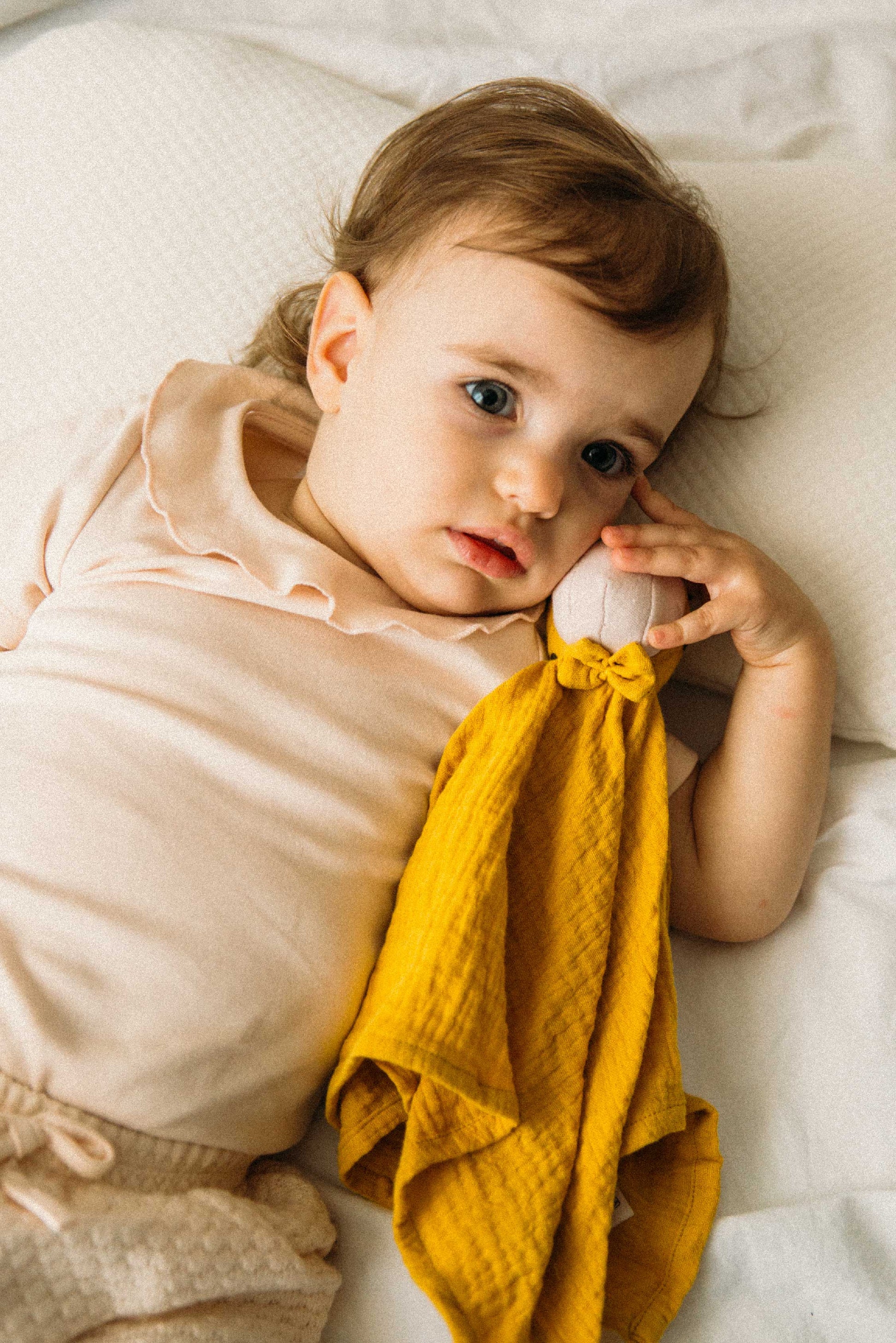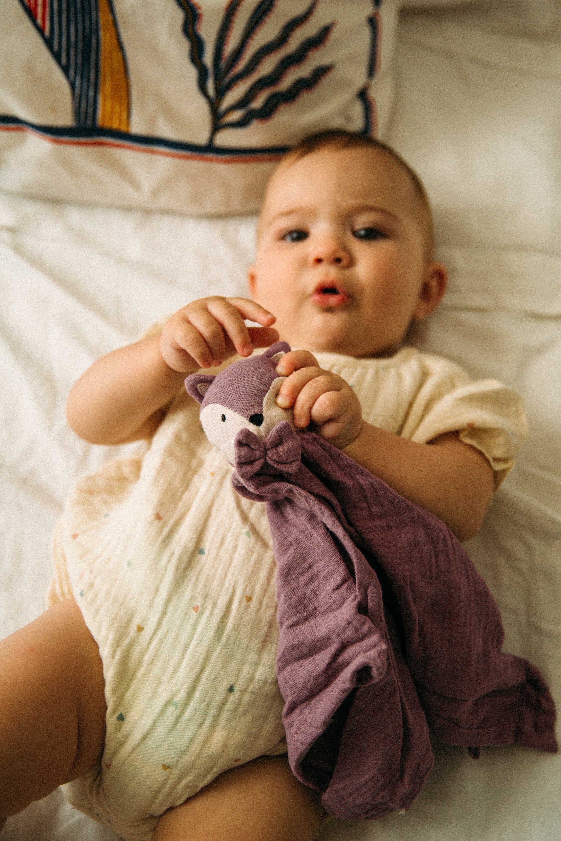 Nuestro doudou de algodón orgánico 100% es el compañero ideal para tu bebé. Ofrece suavidad, mimos y protección, con un tamaño perfecto que te permite llevarlo siempre contigo y acompañar a tu peque en cada aventura.