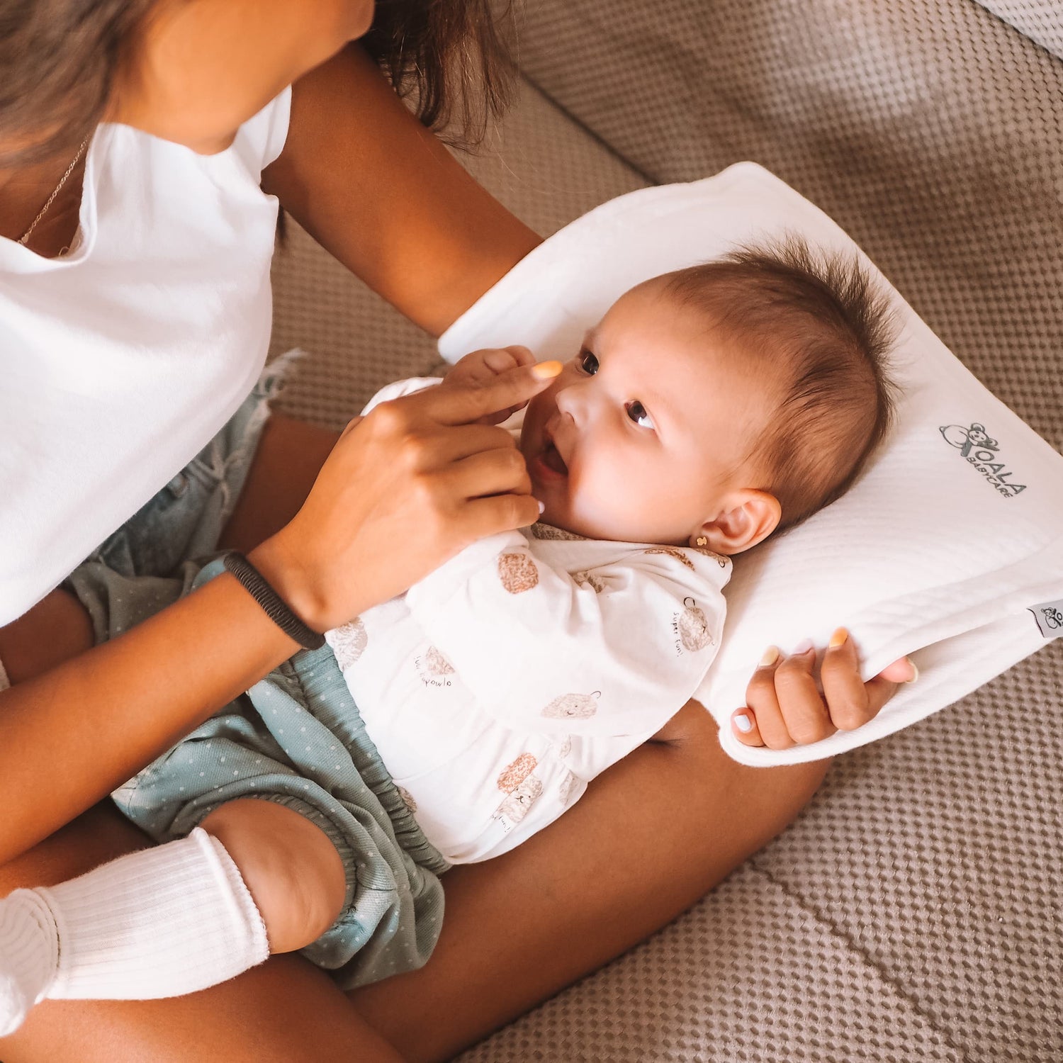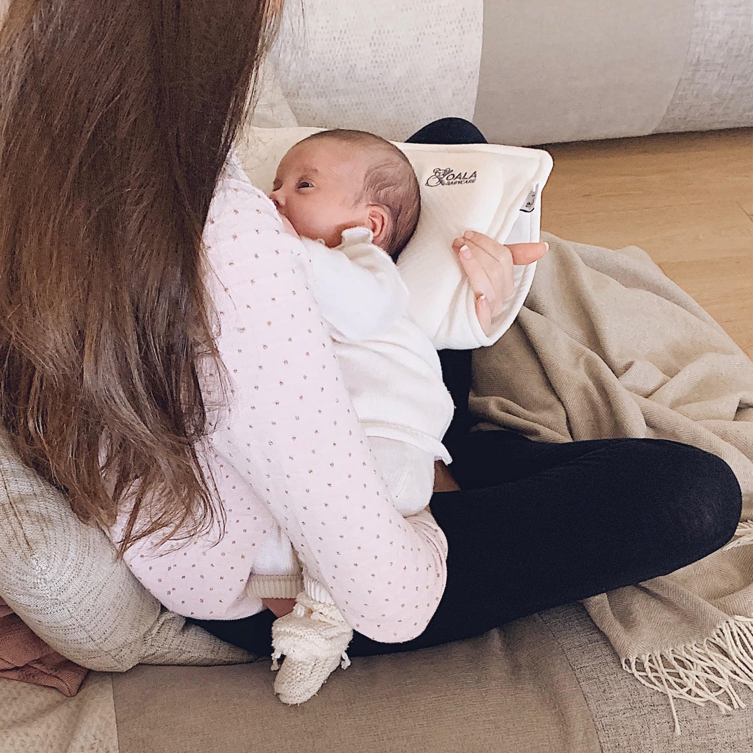 Pendant l'allaitement, le bébé reste dans la même position, appuyant longuement la tête contre le bras de la maman. Cette position facilite l'apparition d'une plagiocéphalie positionnelle ou aggrave une plagiocéphalie déjà présente. Grâce à Koala Perfect Head Breastfeeding, vous bénéficierez d'un soutien qui aide à prévenir et à traiter le syndrome de la tête plate à tout moment de la journée, même pendant l'allaitement.