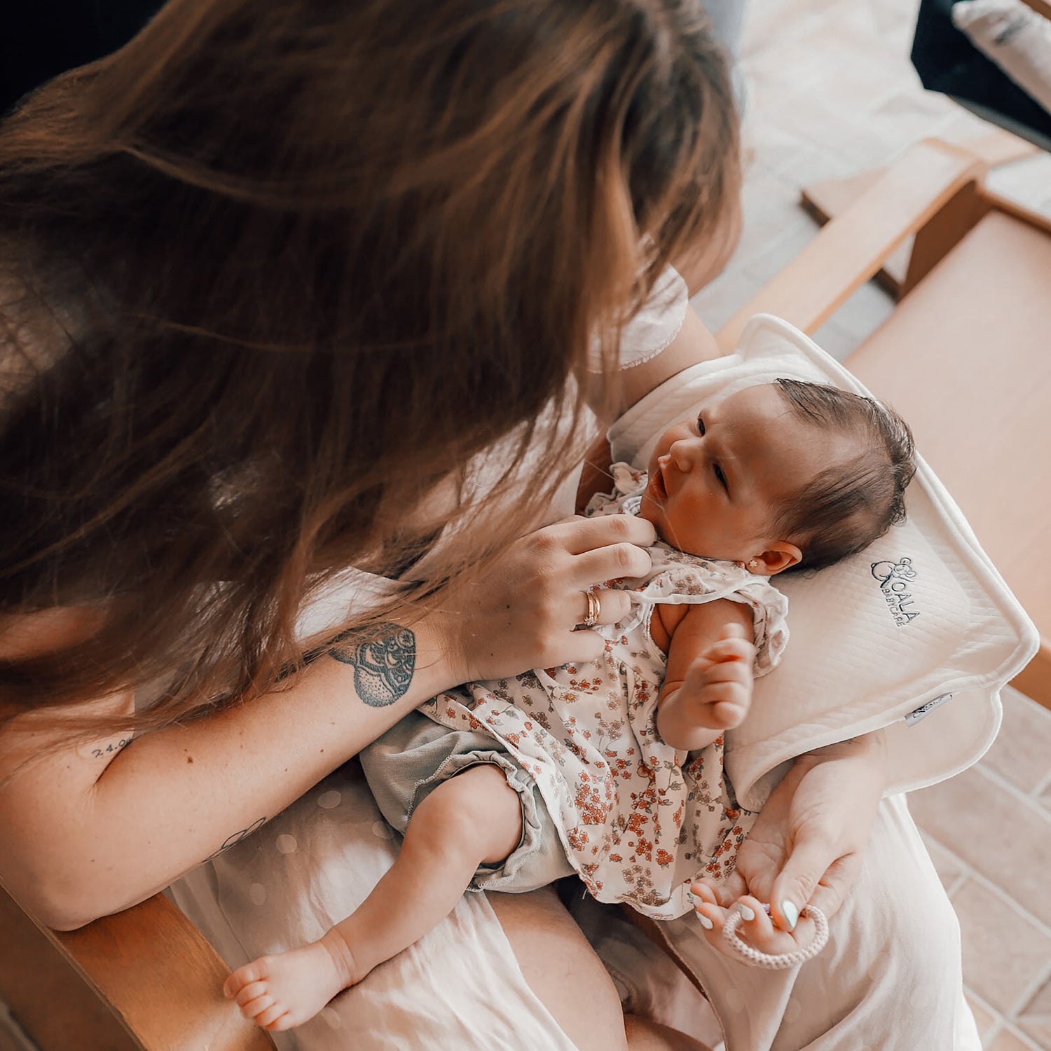 Pratique et compact, il suffit de le glisser sur votre bras pour protéger sa tête à chaque fois que vous le nourrissez ou que vous le tenez dans vos bras.