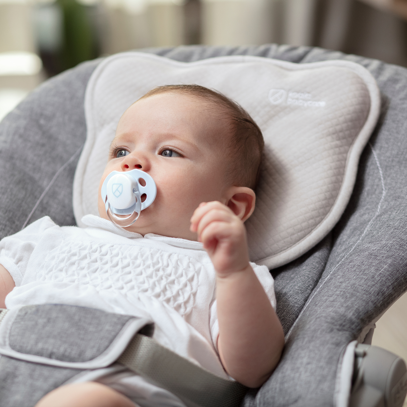 Suitable for infants up to 12 months, it can be used in cribs, carrycots, prams, pushchairs, bouncers, and car seats.